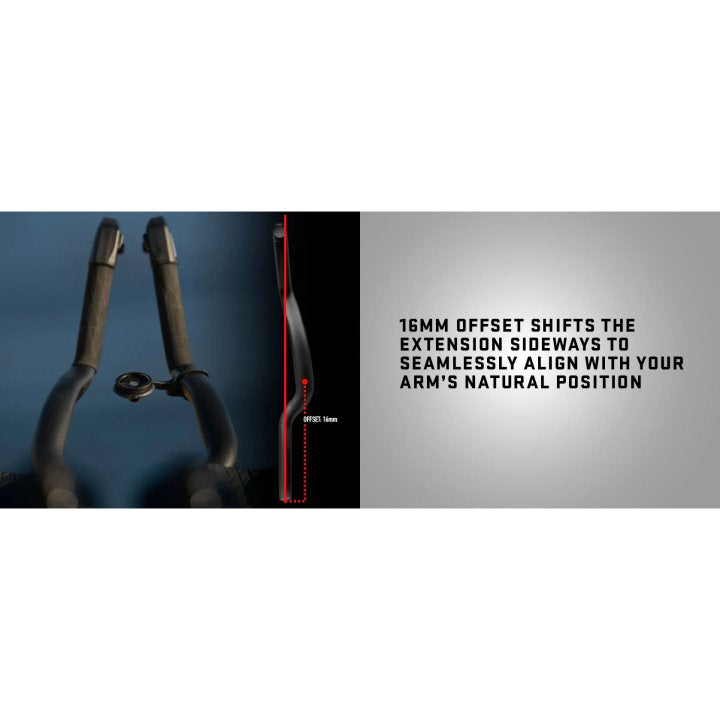Der aktuelle Trend im Aerobar-Fitting geht zu höheren Handpositionen. Daher wurde die Rise im Vergleich zur Vorgängergeneration erhöht.